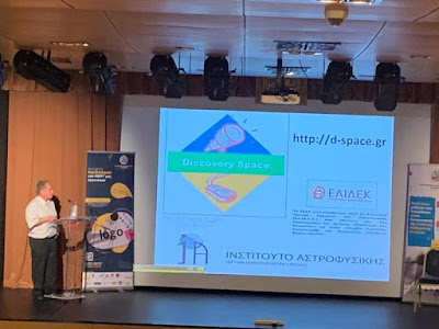 Στην ομιλία αναπτύχθηκε (εν τάχη) το πρόγραμμα D-space καθώς και η συνεργασία του Τμήματος Εκπαιδευτικών Θεμάτων της ΔΔΕ Έβρου με το πρόγραμμα, που υλοποιείται από το Ινστιτούτο Αστροφυσικής, Ίδρυμα Τεχνολογίας & Έρευνας, Τμήμα Φυσικής, Πανεπιστήμιο Κρήτης, Ηράκλειο με επιστημονικό υπεύθυνο τον κ. Βασίλειο Χαρμανδάρη, Διευθυντή Αστεροσκοπείου Σκίνακα (Ηράκλειο) και Διευθυντή του Ινστιτούτου Αστροφυσικής στο Ίδρυμα Τεχνολογίας & Έρευνα σε συνεργασία με 6 σχολικές μονάδες (σχολικοί κόμβοι).